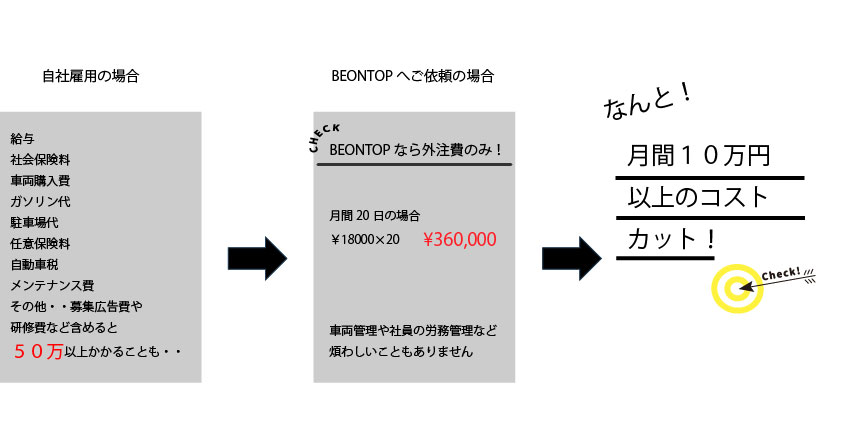 軽貨物は金額だけを見ると高いと思われることもありますが、自社でドライバーを雇用するよりも安くなることが多いのです。