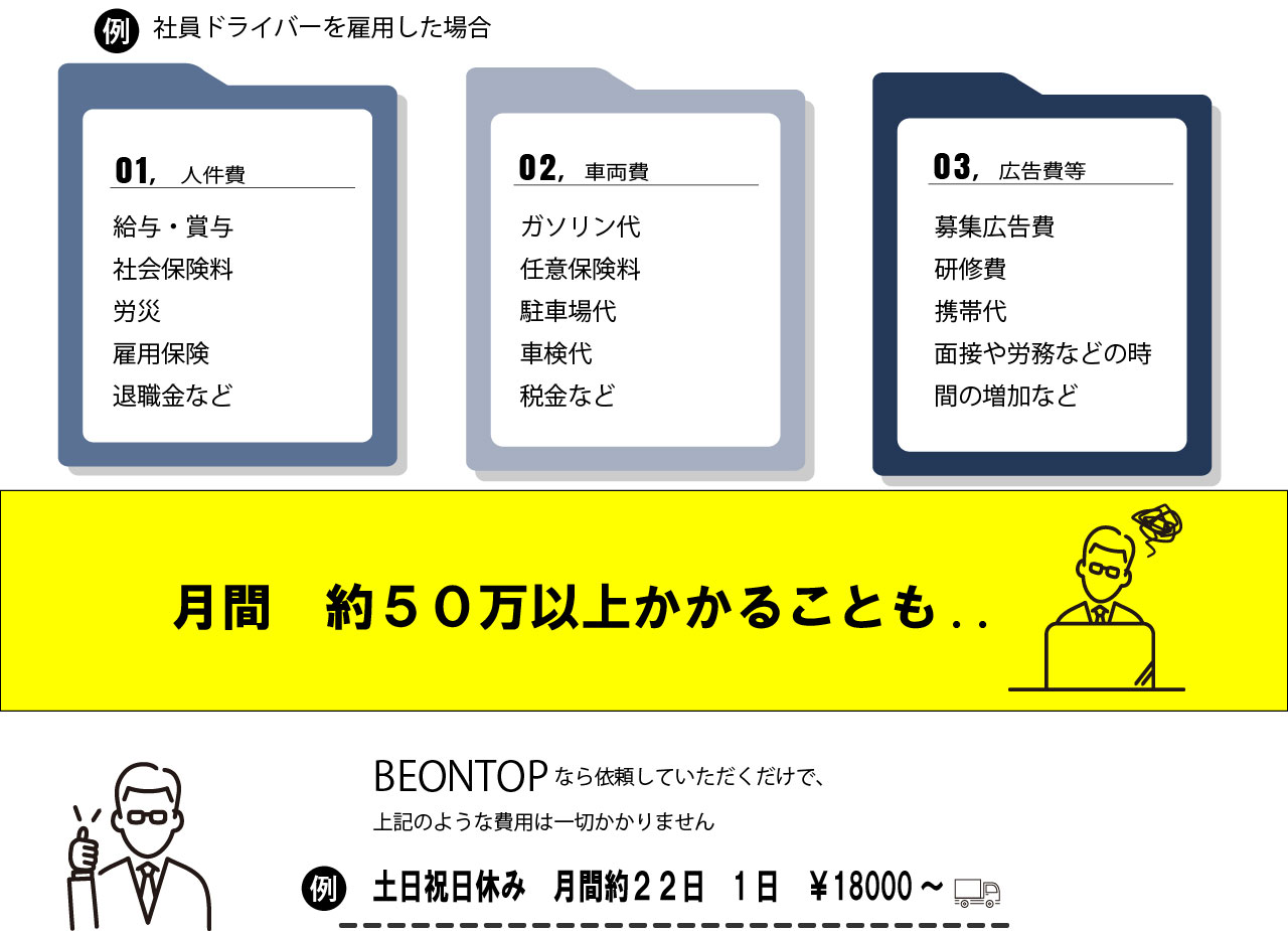 弊社がお客様の配送部門をすべて請け負いますので、コストも削減!